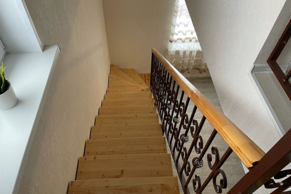 Лестница в деревянном доме - один из ключевых предметов интерьера, требующий внимательного ухода. Материал не любит резких температурных перепадов и повышенной влажности воздуха. Идеальный температурный диапазон, при котором дерево как можно дольше сохранит эксплуатационные свойства ― от 16 до 27 °С. Чаще проветривайте помещения: сухой воздух может спровоцировать появление трещин на поверхности. Избегайте хождения по лестнице на каблуках.